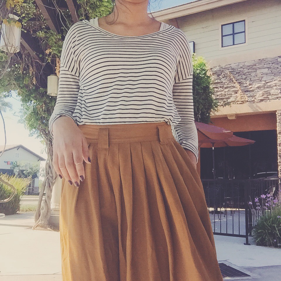 I’ve been wanting to do this post for so so long and finally got a chance! This is an OOTD with one of my favorite pieces: this mustard yellow midi vintage skirt! One of my good friends runs the cutest online vintage clothing store. She finds all these one of a kind pieces herself and sells them at such affordable prices! I’m all about supporting small businesses and Ladies Who Lunch is definitely one of my favorites. Hafsa does a phenomenal job finding pieces for women of all sizes and styles. You can also check out their Instagram here for more regular updates on all new pieces! I’m currently gushing over all their midi skirts and dresses.