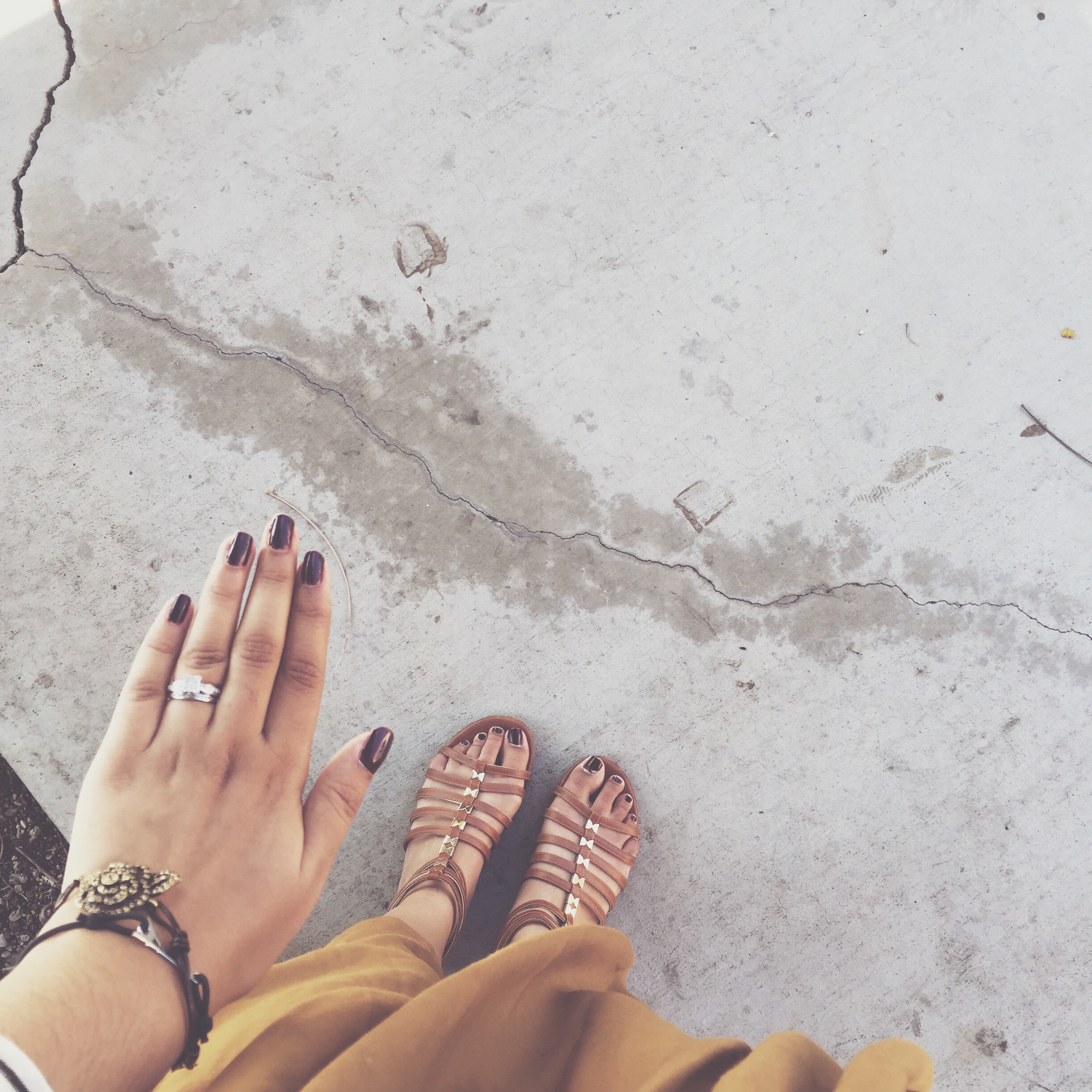 For details, I’m wearing a couple bracelets I was given as gifts and my wedding ring/band with some midi rings on my right hand. I kept pretty much everything in neutrals since this beautiful skirt was definitely the star of this ensemble.