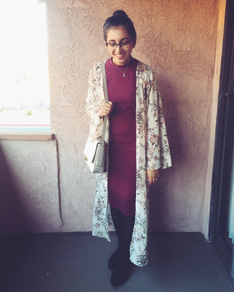 The floral kimono was a purchase a from last summer and it’s something I used to make any formal outfit a little more modest. I threw this over my dress since it was a bit more form fitting than I’m used to.