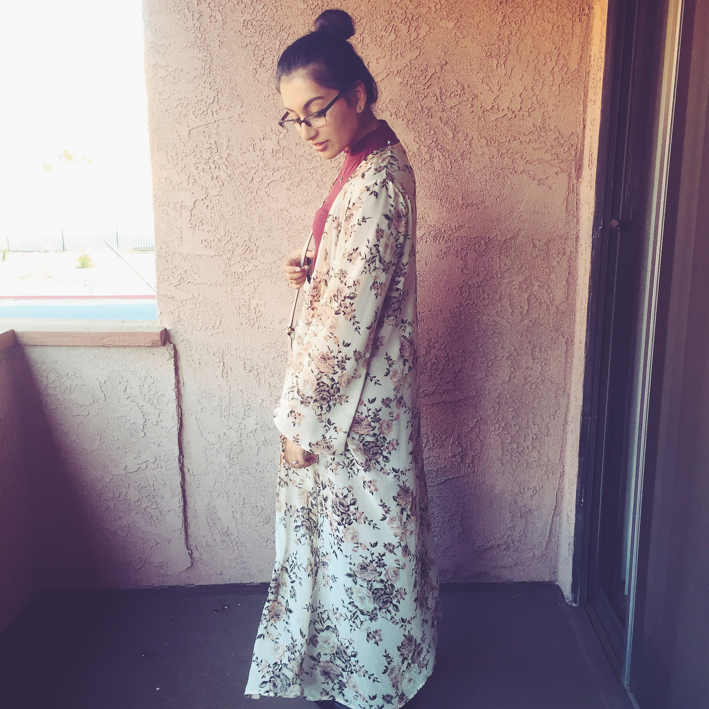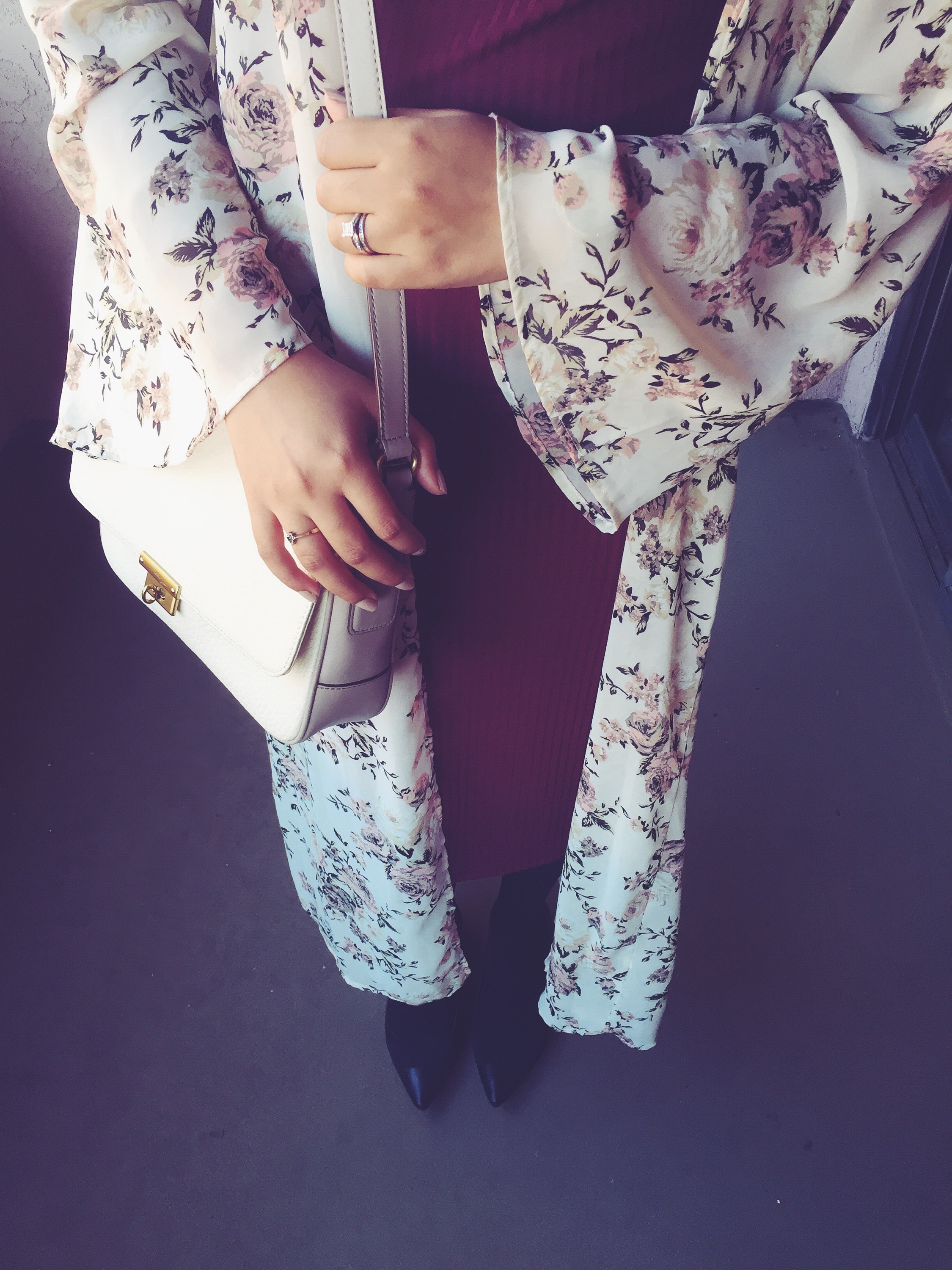 The floral kimono was a purchase a from last summer and it’s something I used to make any formal outfit a little more modest. I threw this over my dress since it was a bit more form fitting than I’m used to.