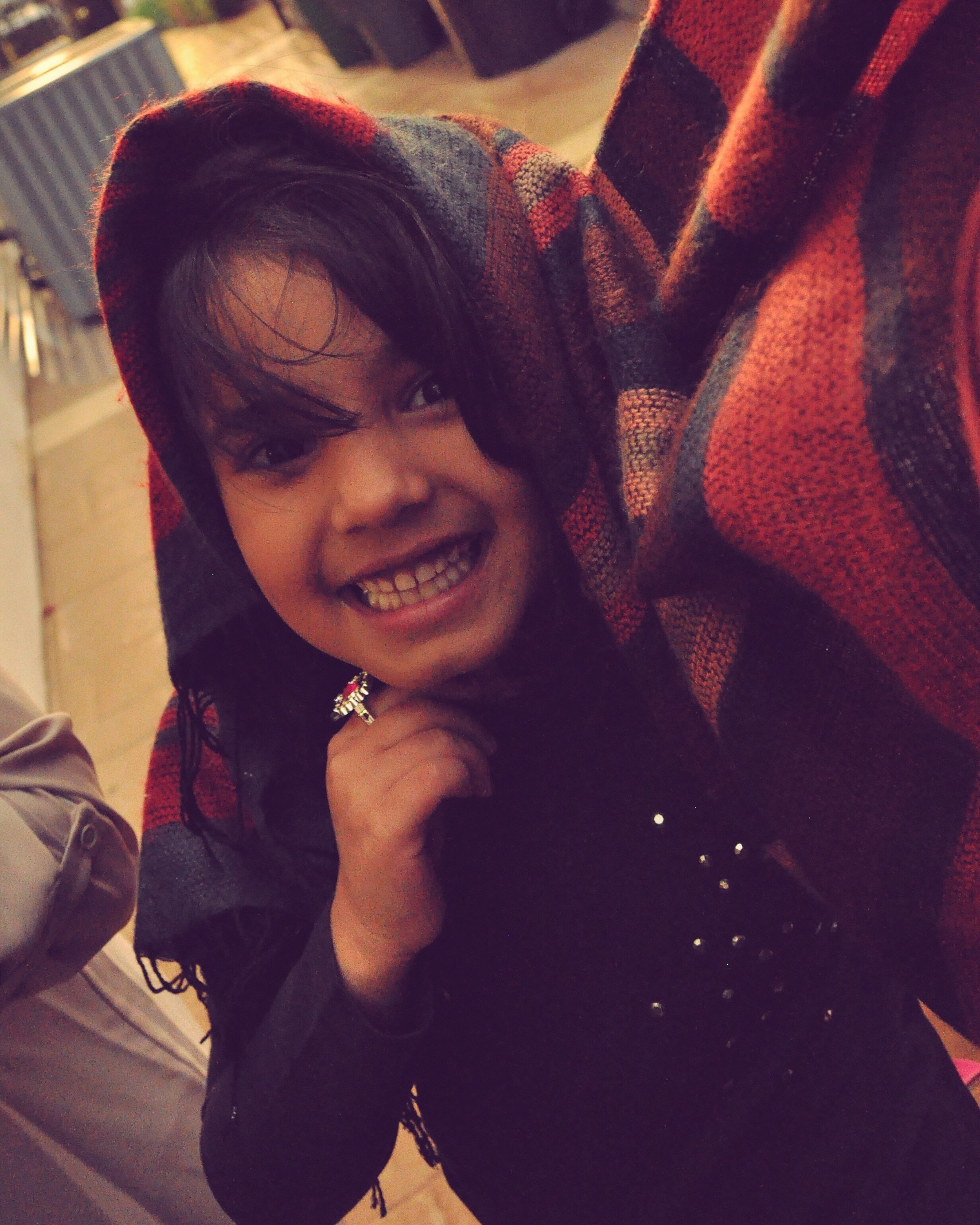 I was wearing a blanket scarf and one of the little goobers decided that she was going to use me to stay warm while we were outside. You can see my whole outfit for Thanksgiving in my previous post!